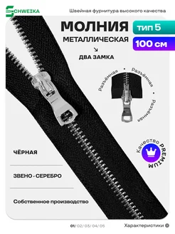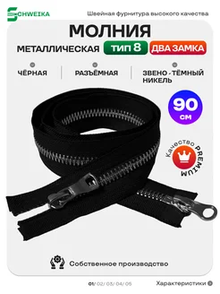 Молния металлическая тип 8-2 замка 90см, темный-никель