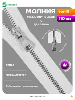 Молния металлическая, тип 5 неразъемная, 30 см, серебро