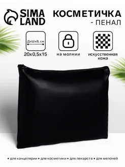 1шт.Косметичка-пенал на молнии с карманом, чёрная