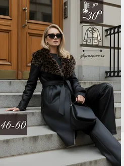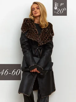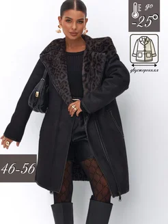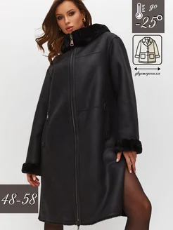 Дубленка шуба зимняя с капюшоном двусторонняя удлиненная