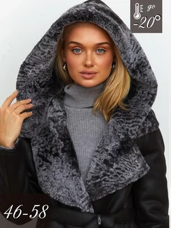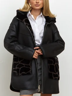 Дубленка зимняя двухсторонняя с капюшоном укороченная