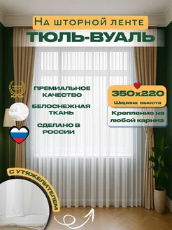 Тюль вуаль в спальню и гостиную длинная 350х245 см белая
