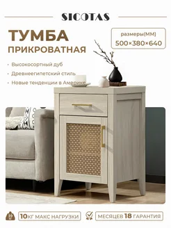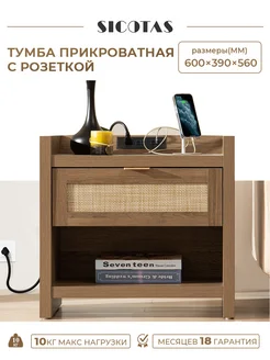 Тумба прикроватная с розеткой из ротанга для спальни