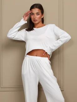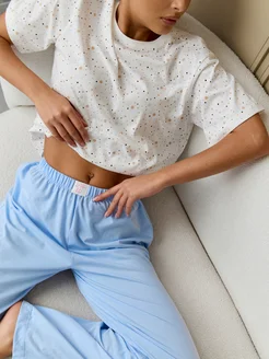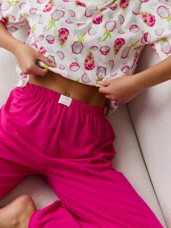 Пижама со штанами хлопок рибана больших размеров новогодняя