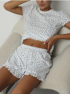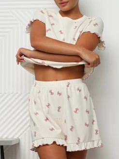 Пижама с шортами и майкой рибана больших размеров новогодняя