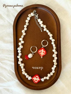 Чокер из натурального жемчуга с орнаментом