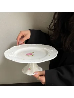 Керамическая тортовница на ножке в ретро стиле 24.5 см