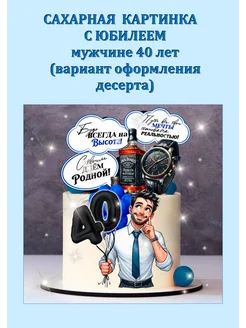 Сахарная картинка на торт С юбилеем мужчине 40 лет