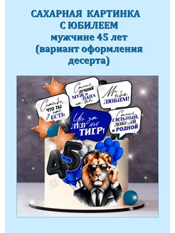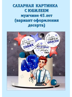 Сахарная картинка на торт С юбилеем мужчине 45 лет