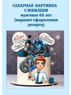 Сахарная картинка на торт С юбилеем мужчине 60 лет