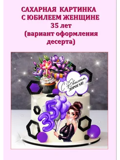 Сахарная картинка С юбилеем женщине 35 лет