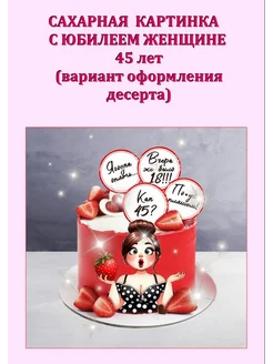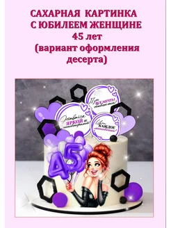 Сахарная картинка С юбилеем женщине 45 лет