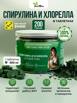 Спирулина и хлорелла в таблетках 200 гр БАД