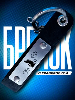 Кожаный брелок для ключей, с гравировкой Крыса