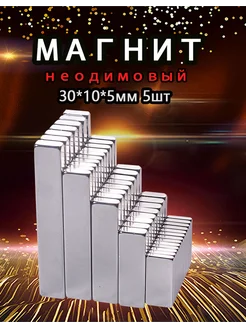 Неодимовый магнит прямоугольный 30х10х5 мм 5шт
