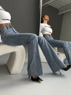 Джинсы клеш от колена с высокой посадкой
