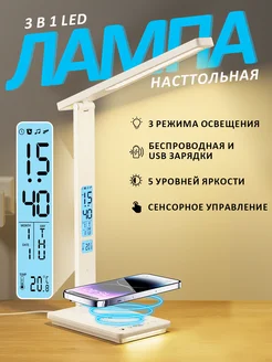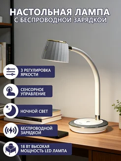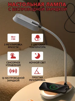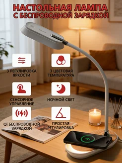 Лампа настольная с беспроводная зарядка прикроватные свет