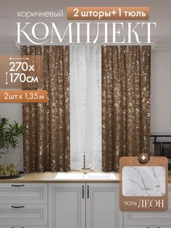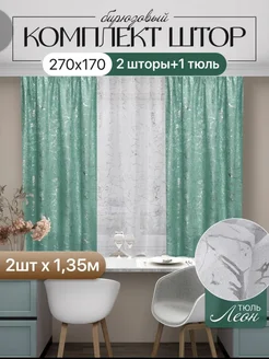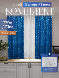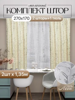 Шторы на кухню с тюлью короткие 170х270см