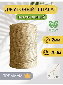 Шпагат джутовый 2мм для рукоделия и вязания 200м