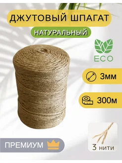 Шпагат джутовый 3мм для рукоделия и вязания 300м