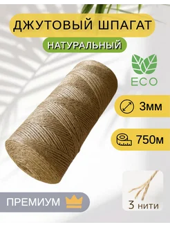 Шпагат джутовый 3мм для рукоделия и вязания 750м