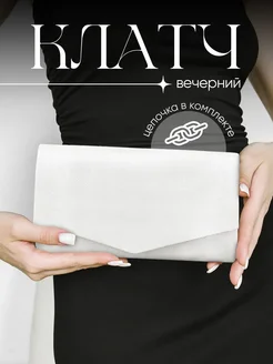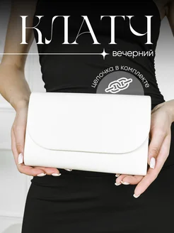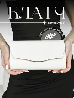 Клатч вечерний белый с цепочкой на плечо свадебный