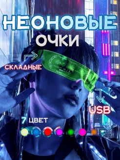 Светящиеся очки неоновые led складные c USB киберпанк тикток