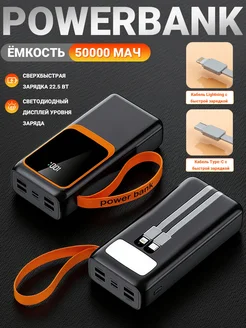 Повербанк 50000 мАч Быстрая зарядка 22.5Вт Фонарик