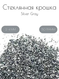 Серебристо серое битое стекло для рукоделия 2 мм 50 грамм