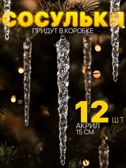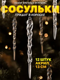Новогодние елочные игрушки - набор украшений Сосульки 12 шт