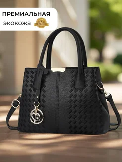Сумка тоут черная средняя с узором
