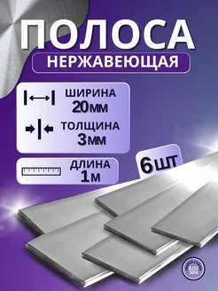 Полоса нержавеющая 3 мм x 20 мм длина 1м aisi 304 6шт