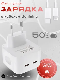 Быстрая зарядка для iPhone Type-C Lightning 2 разъема