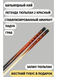 Кий бильярдный Легенда Тюльпан 2 Red тубус в подарок