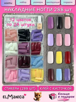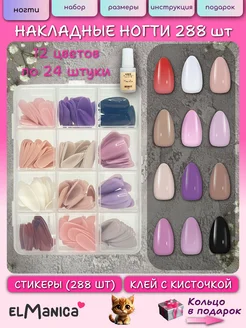 Накладные ногти набор длинные с большим клеем 288 шт