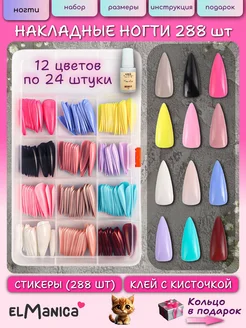 Накладные ногти набор длинные острые с большим клеем 288 шт