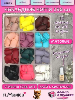 Накладные ногти набор короткие с большим клеем 288 шт
