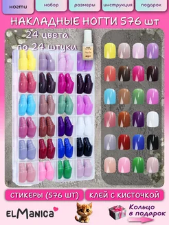 Накладные ногти набор короткие с большим клеем 576 шт