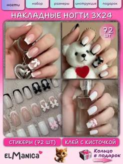 Накладные ногти набор короткие с клеем френч 72 шт