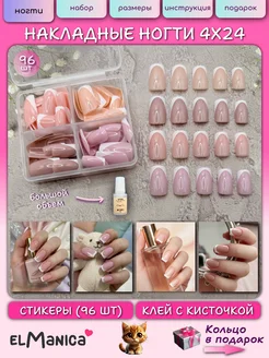 Накладные ногти длинные с клеем и дизайном френч 96 шт