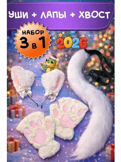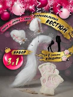 Карнавальный костюм перчатки лапки ободок ушки хвост белый