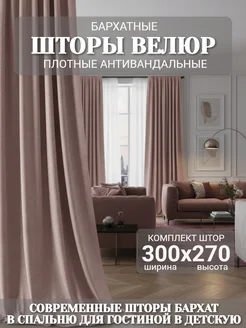 Шторы для гостиной велюр 300х270 бархат в спальню на кухню