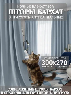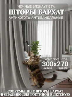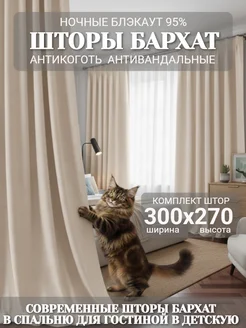 Шторы Бархат антикоготь 300х270 для гостиной велюр в спальню