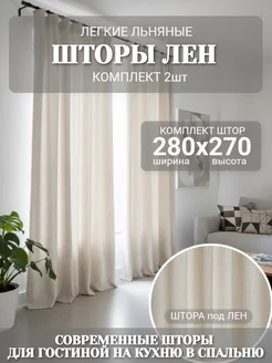 Шторы под Лен 280х270 легкие льняные для гостиной на кухню