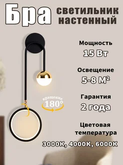 Бра Светильник настенный Светодиодный, лампа LED, Черный