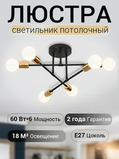 Люстра потолочная подвесная 6 рожков,Лампа Лофт E27