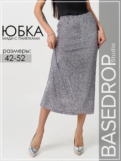 Юбка вечерняя с пайетками серебристо-бежевая миди