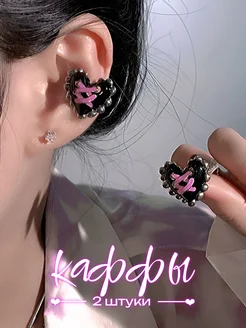Серьги каффы без прокола сердечки y2k бижутерия