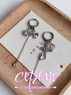 Длинные серьги кресты со стразами бижутерия