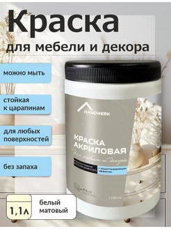 Краска для мебели быстросохнущая белая матовая, 1.1 л